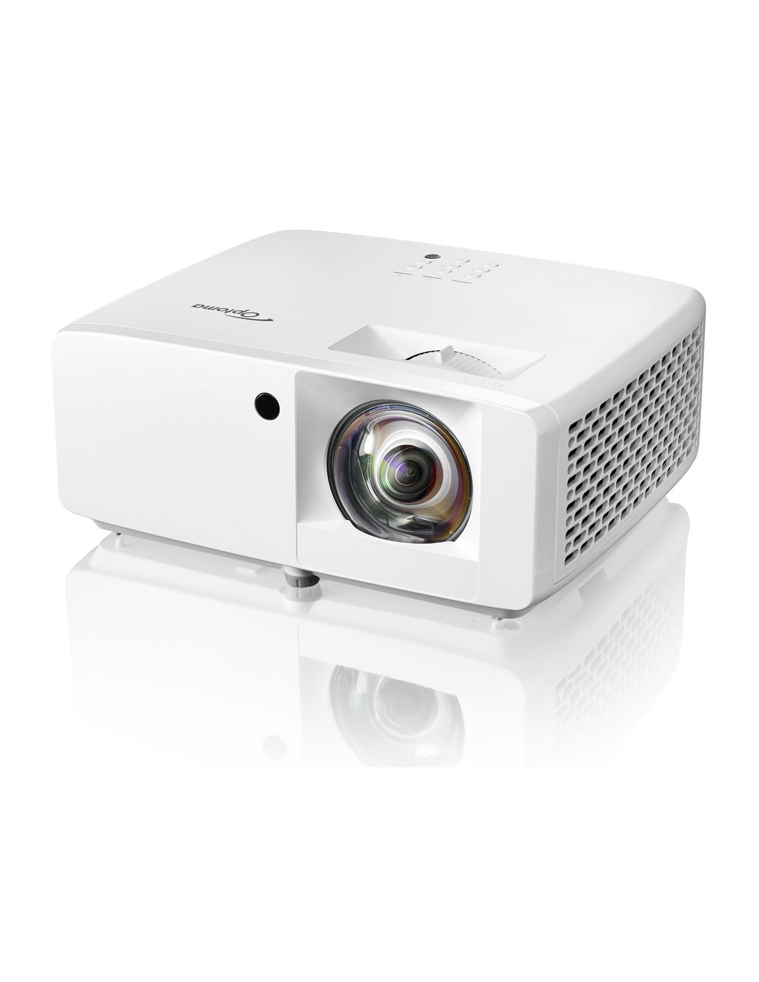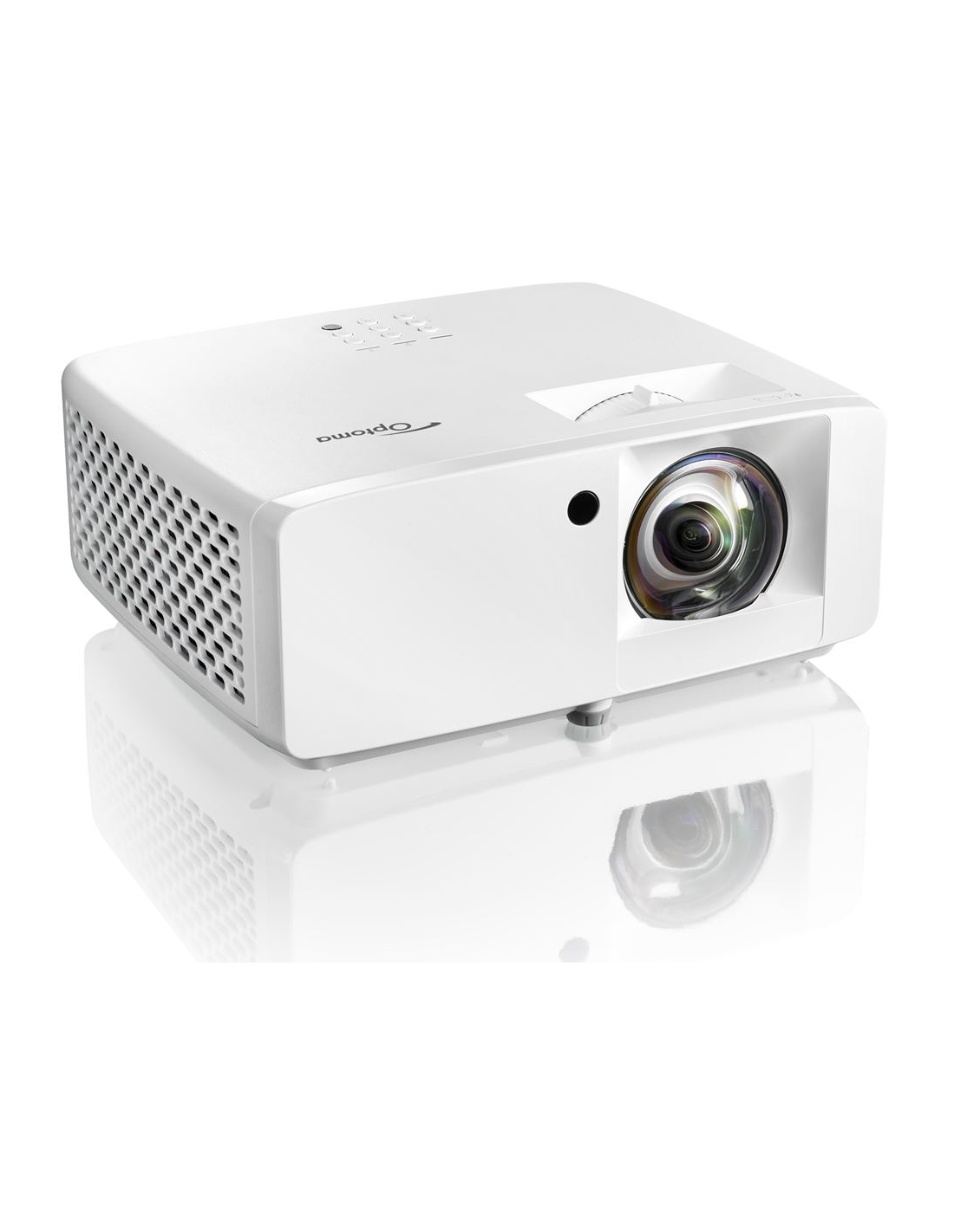 Proyector láser Optoma GT2000HDR Full HD de tiro corto, 3500 lúmenes, compacto y ecológico, hasta 30.000 h de uso y modo gaming para cine y juegos en casa, incluye pantalla DS-9092PWC-