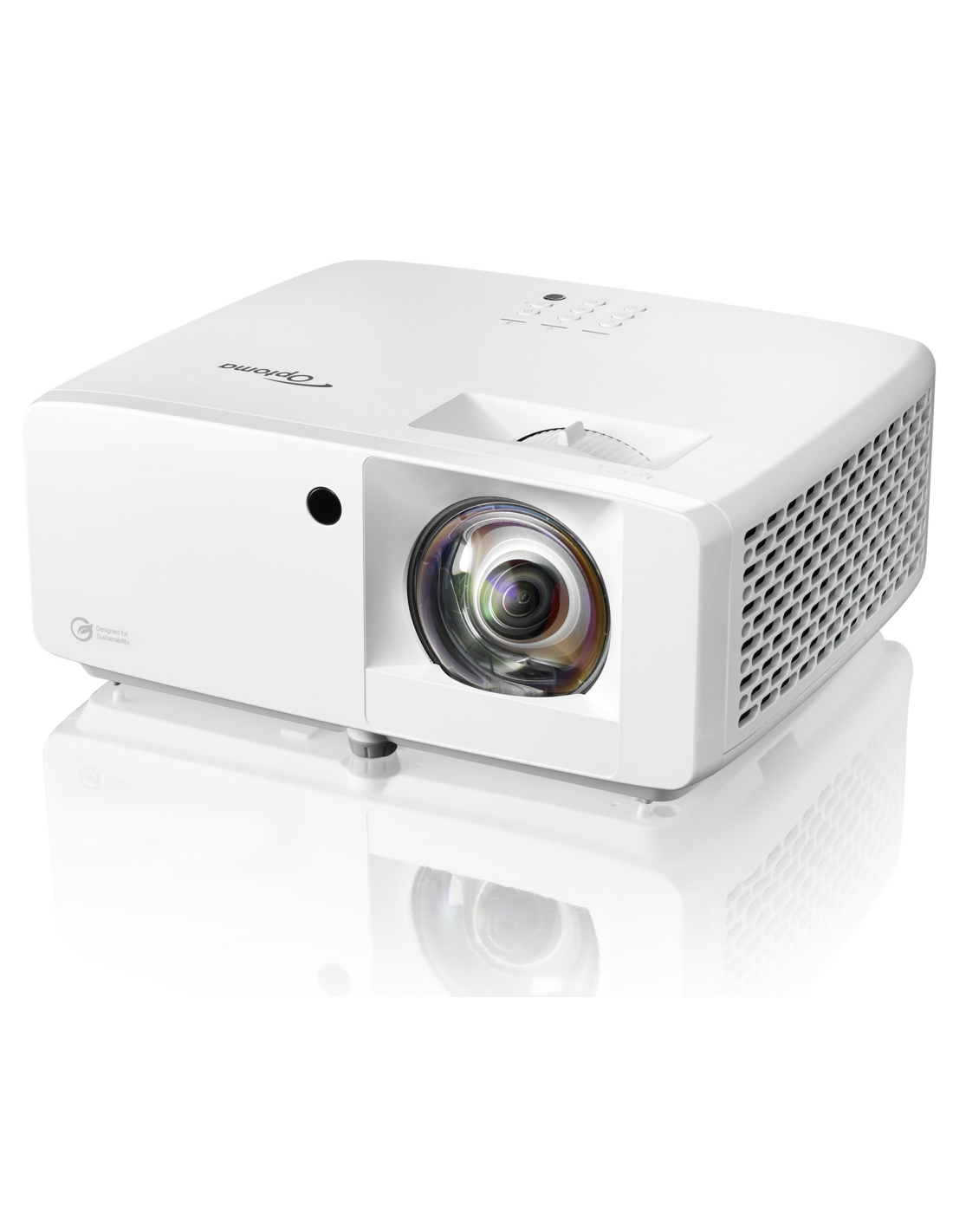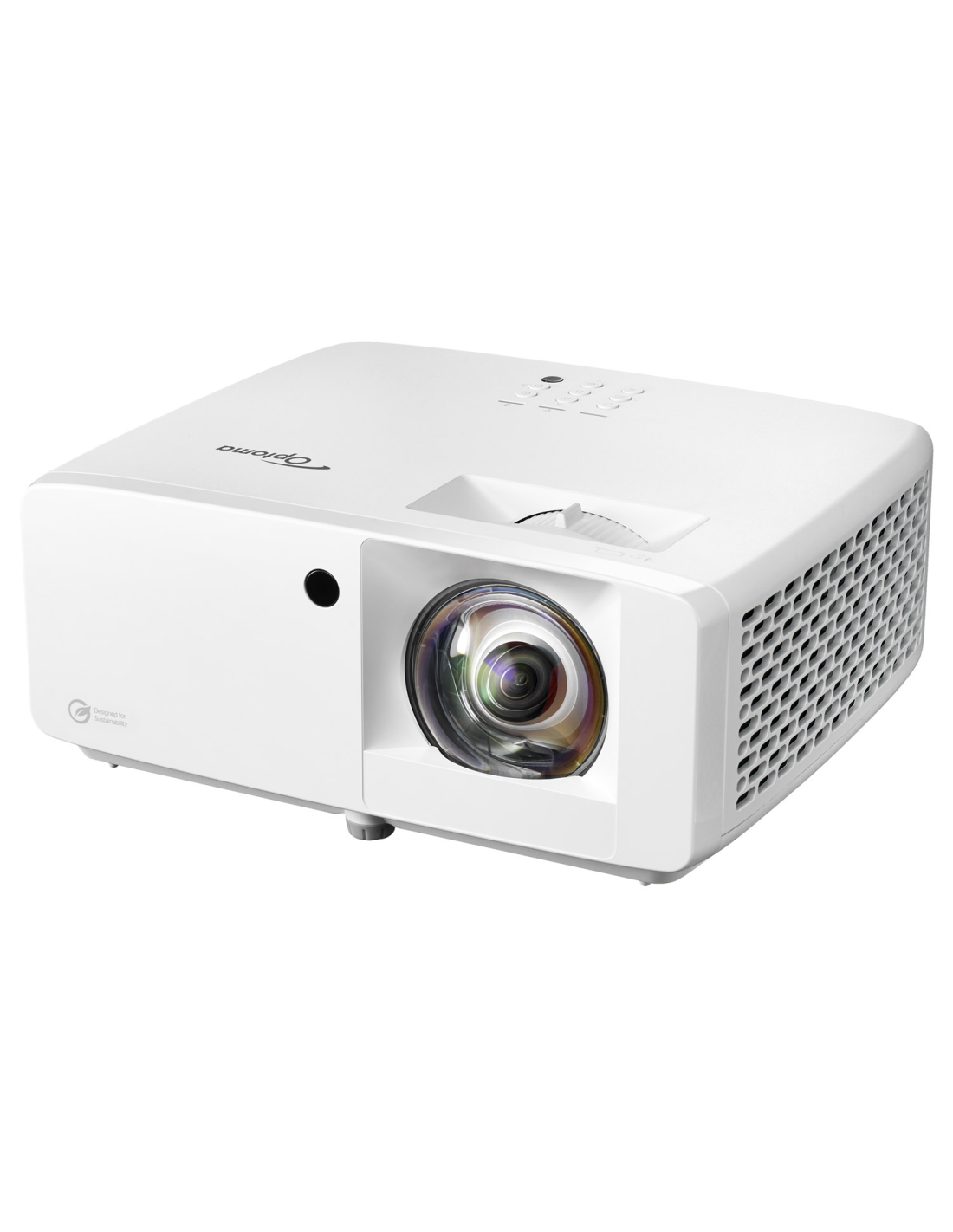 Proyector láser Optoma UHZ35ST de lente corta 4K UHD, 3500 lúmenes, compacto y ecológico, hasta 30.000 h de uso, bajo consumo, ideal para cine en casa y gaming.