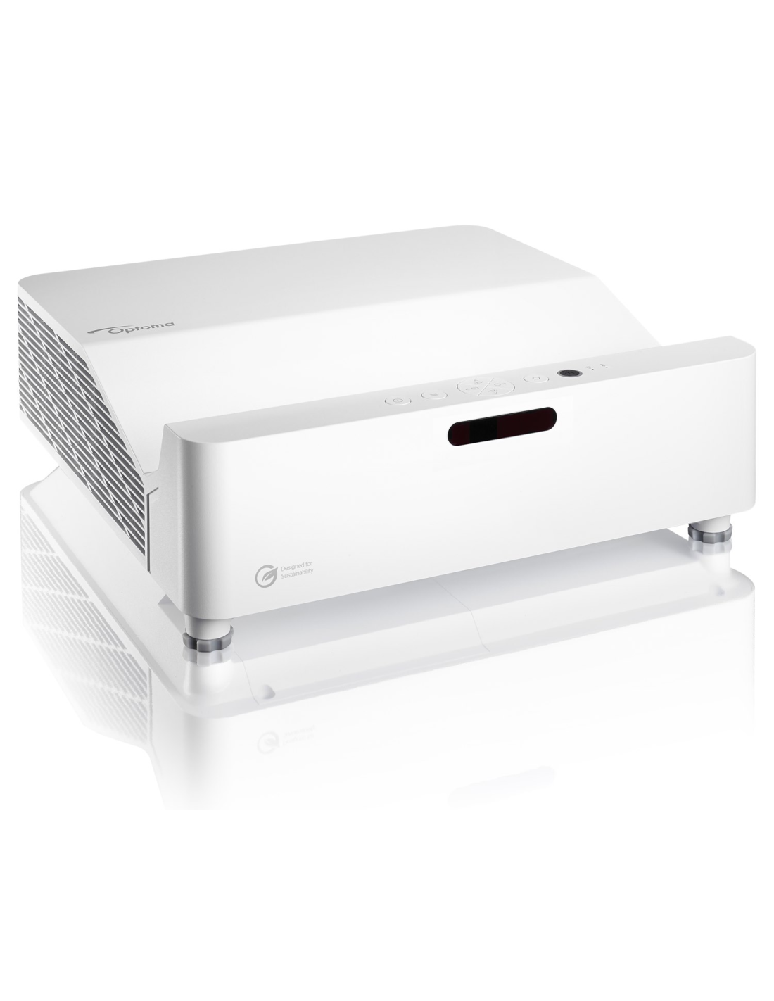 Diseñado con el medio ambiente en mente, el diseño del chasis ecológico está hecho con hasta un 50% de plásticos PCR (Post-Consumer Recycled) y el embalaje contiene hasta un 97% de materiales reciclables.³ Además, el tamaño compacto del producto y del embalaje del proyector Optoma GT3500HDR permite transportar 2 veces más productos por contenedor, lo que resulta en una logística más eficiente para ayudar a reducir aún más las emisiones de carbono.¹