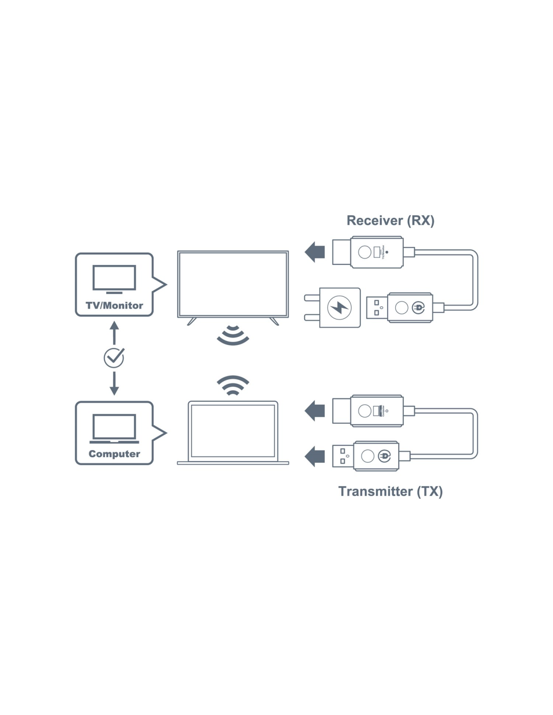 Conexiones: 1x HDMI in + 1x USB-A (emisor), 1x HDMI out (receptor).