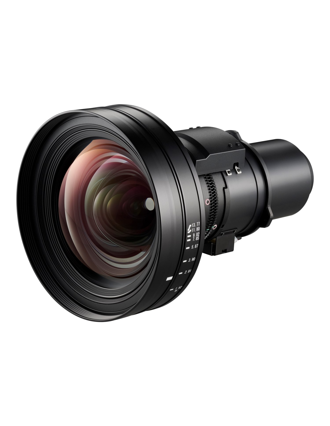Lente de tiro corto BX-CTA12 con ratio 0,90-1,30:1, offset cero y zoom motorizado 1,44x diseñada para proyectores láser DuraCore Ultra Bright Optoma ZK1120, ZK1320, ZU1700, ZU1900 y ZU2200. Perfecta para instalaciones inmersivas y temáticas con limitaciones de espacio, proyectando pantallas de 50" a 500" desde 0,97 m hasta 14 m con memoria de 5 configuraciones personalizadas.