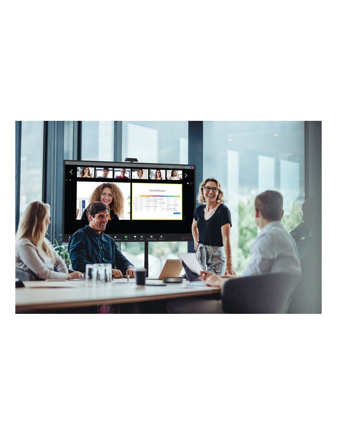 Pantalla premium con brillo superior, filtro de baja luz azul y tecnología sin parpadeos Software exclusivo Whiteboard y Display Share, y apps integradas para compartir archivos y gestionar dispositivos Optimizada para soluciones de conferencia como cámaras web, altavoces Bluetooth y carros motorizados Admite orientación vertical y horizontal.