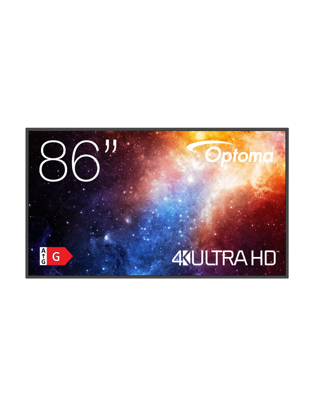 Displays profesionales Optoma Serie N N3861K 86" para señalización y conferencias, con software colaborativo, reproducción multimedia programable y gestión remota centralizada.